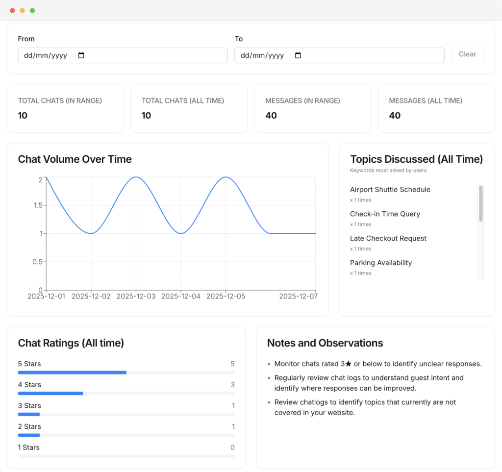 AI-powered chatbot trained from your site and property details, ready to assist guests.